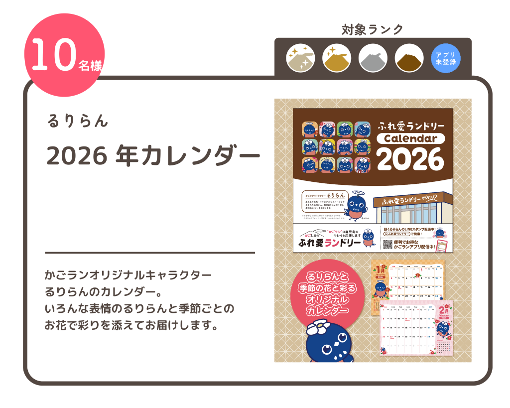 ※かごランアプリ会員登録することで、スータスに応じてさらにお得な賞品が当たります!ぜひアプリダウンロードお願いします!